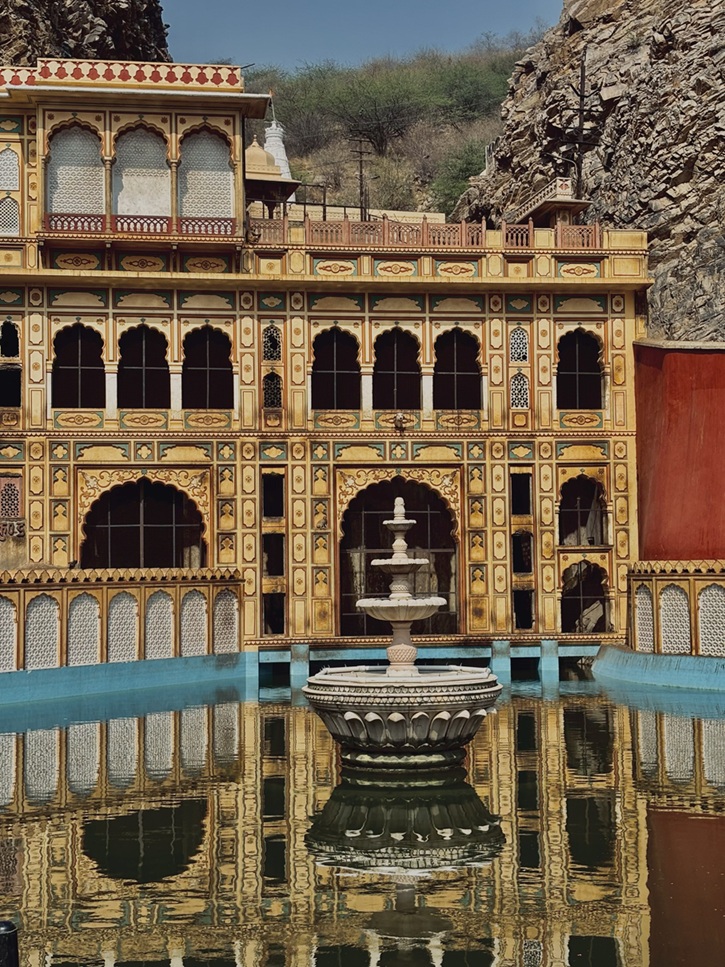 A napot a város egyik rejtett kincsének felfedezésével kezdjük: ellátogatunk a hegyek között megbújó Galta Ji templomhoz, amelyet a helyiek csak „Majomtemplomként” emlegetnek. Ez az ősi hindu zarándokhely mintegy 10 km-re keletre található Jaipurtól, az Aravalli-dombok között. Természetes forrásból eredő víz táplálja medencéket, amelyekben a hívek tisztulásért fürdenek. Az itt élő majmok bátran közelítenek az emberekhez, sokszor játszanak a medencékben vagy más területeken, s jelenlétük élénk, olykor kaotikus hangulatot visz a helyszínre.