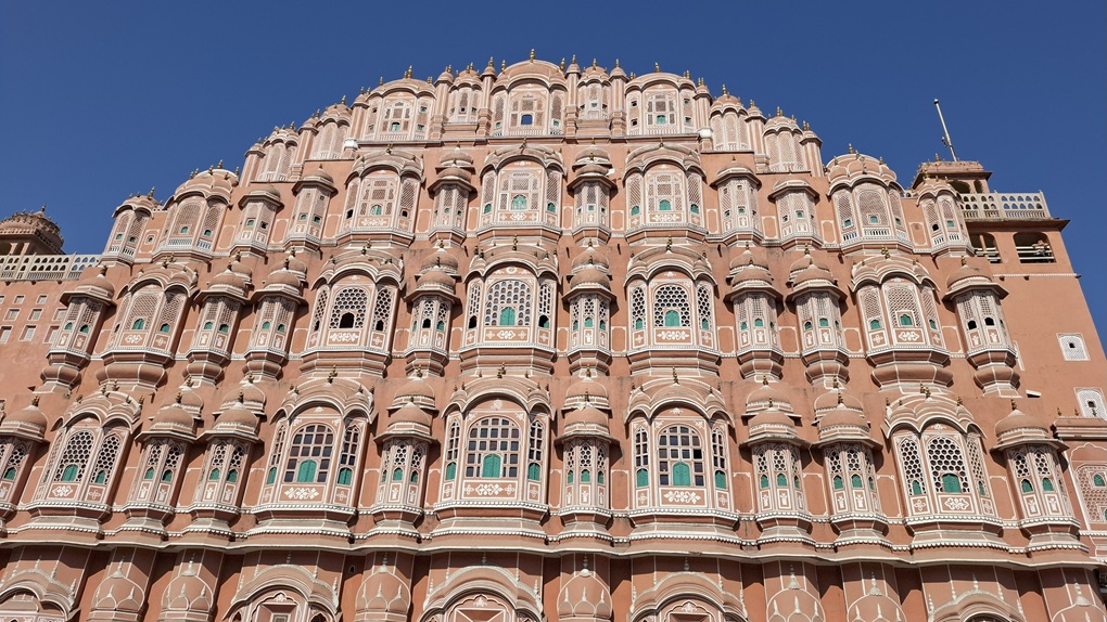 Sétánk során rövid megállót teszünk a város egyik legismertebb jelképénél, a Hawa Mahalnál, vagyis a „Szelek Palotájánál”. A rózsaszín homokkőből épült, öt emelet magas, gazdagon faragott homlokzat több mint 900 apró ablakkal díszített. Ezeken keresztül egykor a palota hölgytagjai anélkül szemlélhették az utcai forgatagot és a felvonulásokat, hogy a külvilág láthatta volna őket.