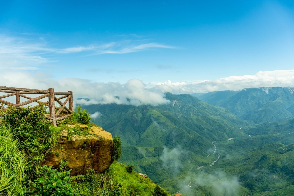 Cherrapunjiból indulva egy túrával kezdjük a napot a Laitlum-kanyonhoz, amely lenyűgöző panorámát kínál a mély szurdokokra és a dombvidék végtelennek tűnő hullámzására. A kilátóhoz vezető ösvény könnyed séta, amely során vadvirágok, távoli khasi falvak és a hegyek nyugalma kíséri utunkat. A sziklaperemről feltáruló látvány a régió egyik legszebb természeti csodája.